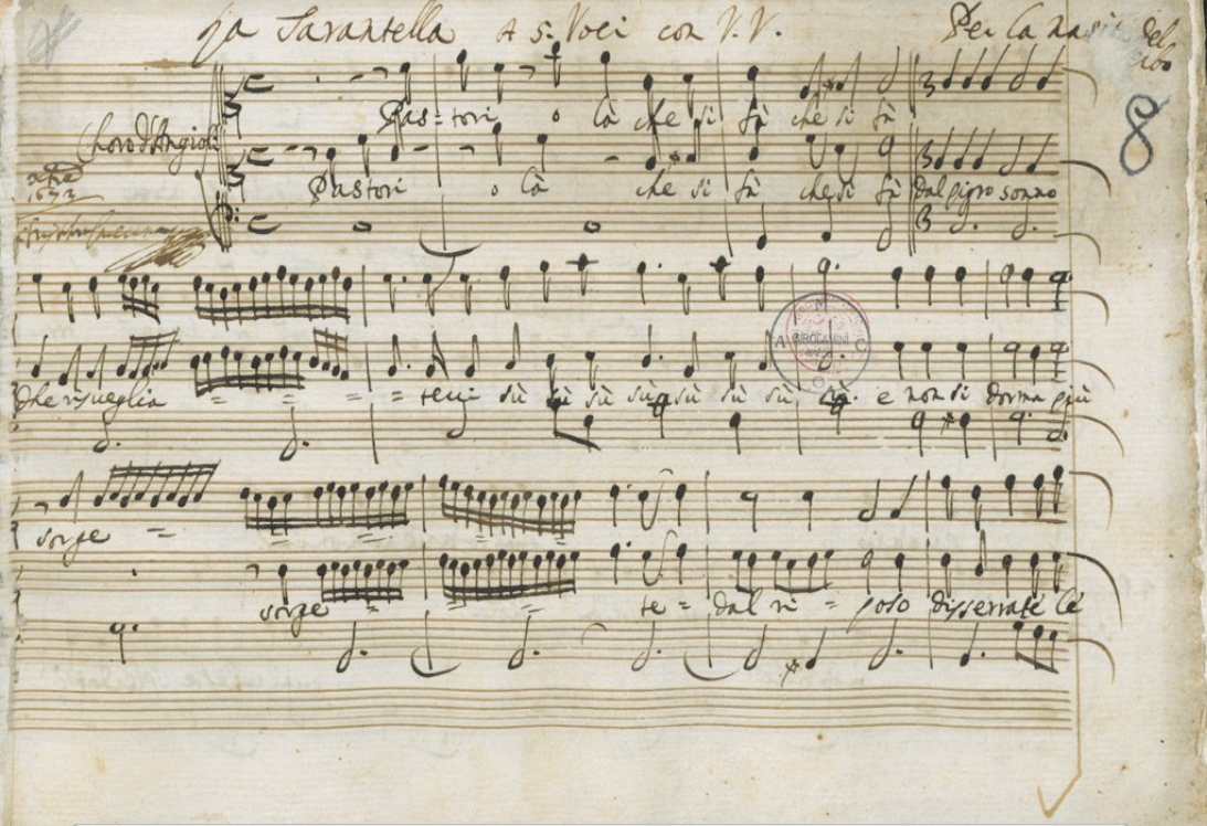 Mon ami Xavier et moi même venions d’achever, après encore beaucoup d’hésitations, d’arrêts et de reprises, un premier déchiffrage d’une transcription pour deux guitares de la Tarentelle de Cristoforo Caresana. Xavier me dit alors ; “sais-tu que j’ai une photo de la partition manuscrite originale de cette pièce ? et il ajouta, en me la montrant sur son téléphone, “c’est émouvant non ?”.